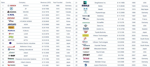 Looking at the car parts supplier landscape, here are the top 40.