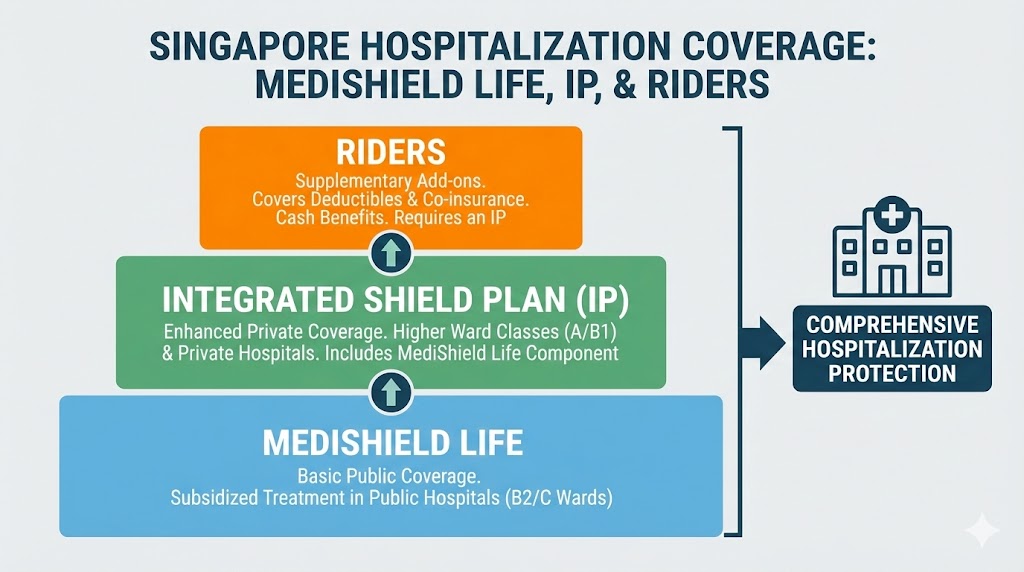 This layered structure is important, because hospital insurance in Singapore is not designed to make hospitalisation free. It is designed to prevent a medical bill from becoming a life-changing financial problem.